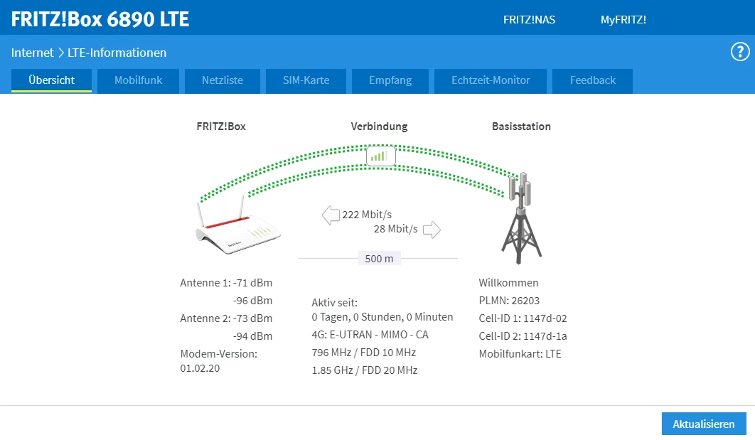 Ich habe eine FRITZ! Box 6890 LTE und eine Richtantenne auf dem Dach