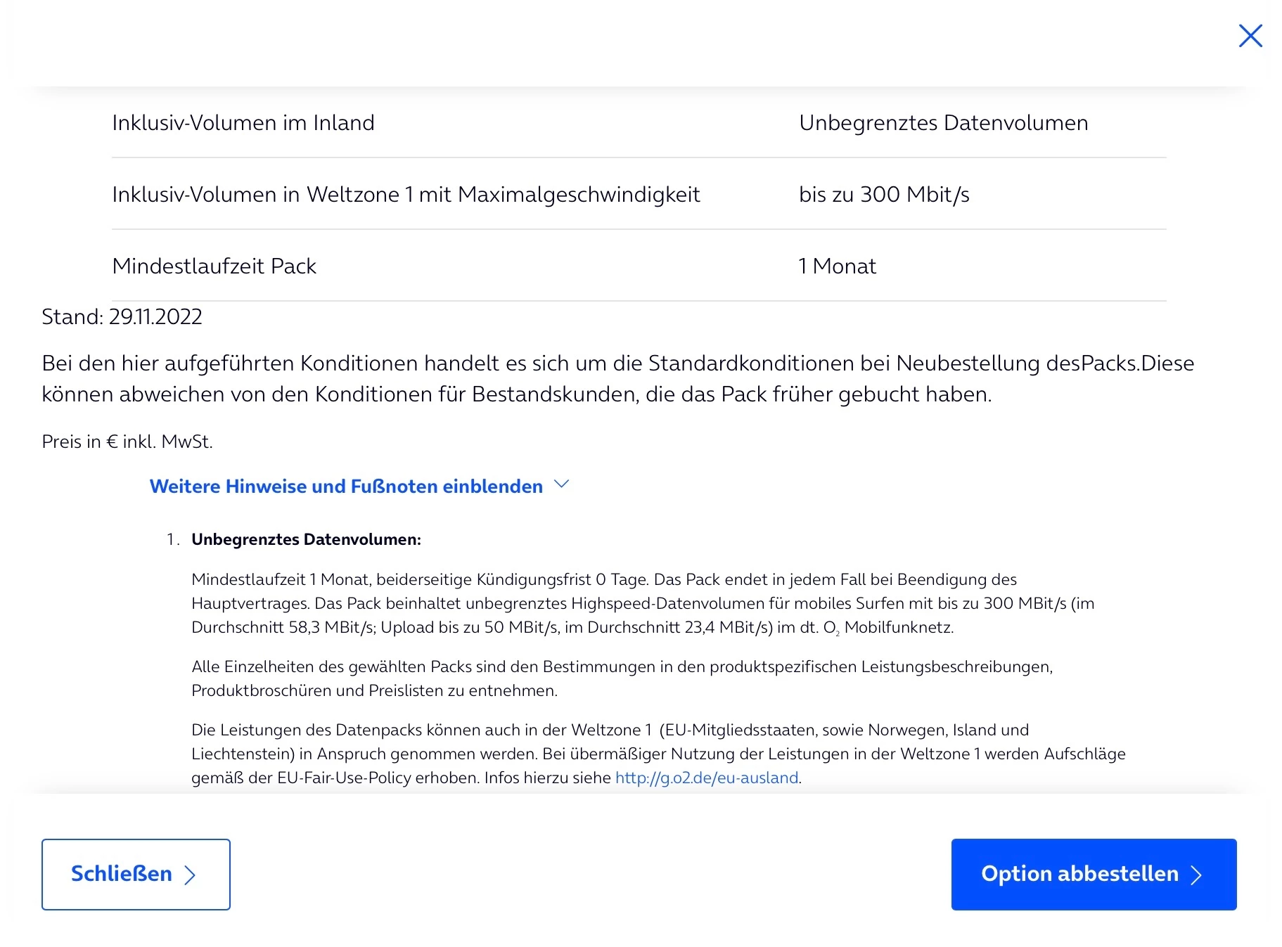 Ich würde gerne das o2 my data unlimited (1monat) Abo zu meinem laufenden Vertrag dazu buchen