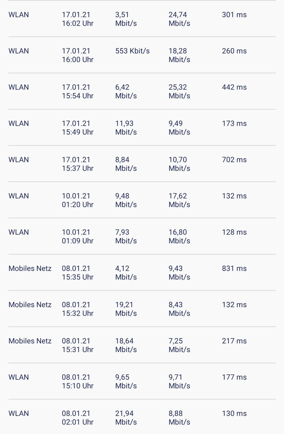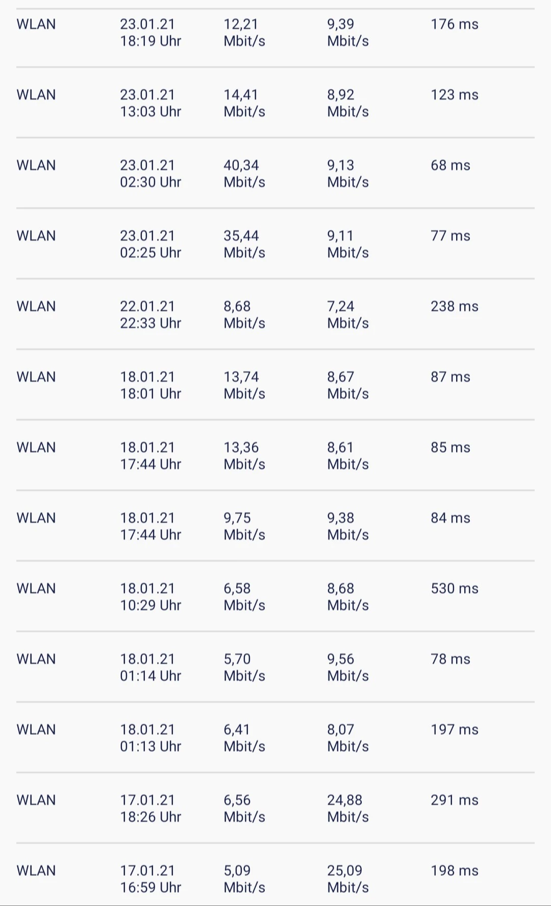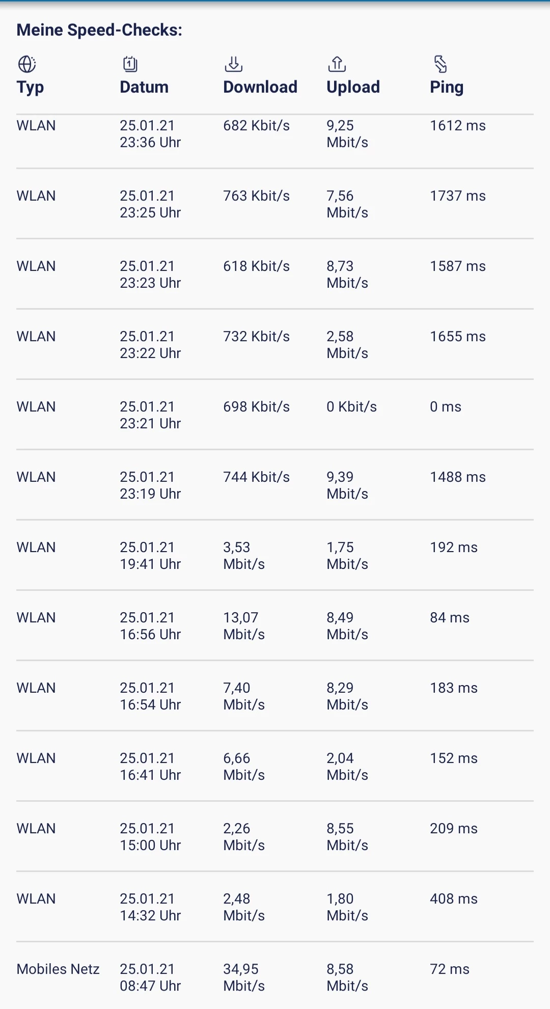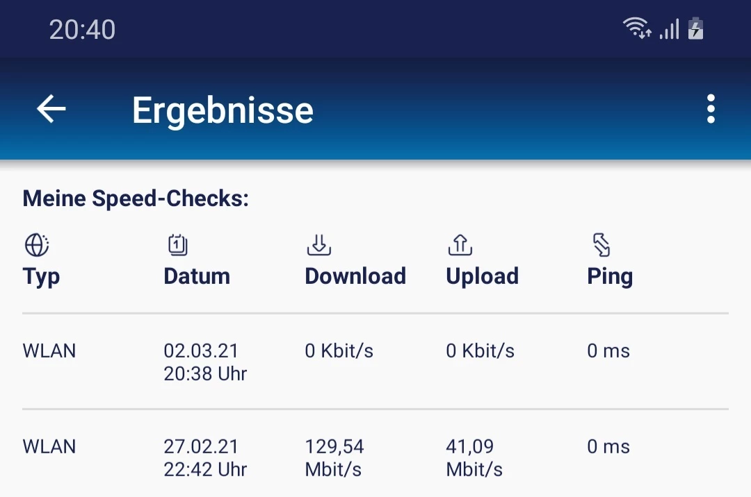 wenn ich LTE ausschalte und den Router über 3G laufen lasse, erreiche ich gerade mal, wenn ich Glück habe und überhaupt den Speedcheck machen kann, 60 - 120 KBit/s