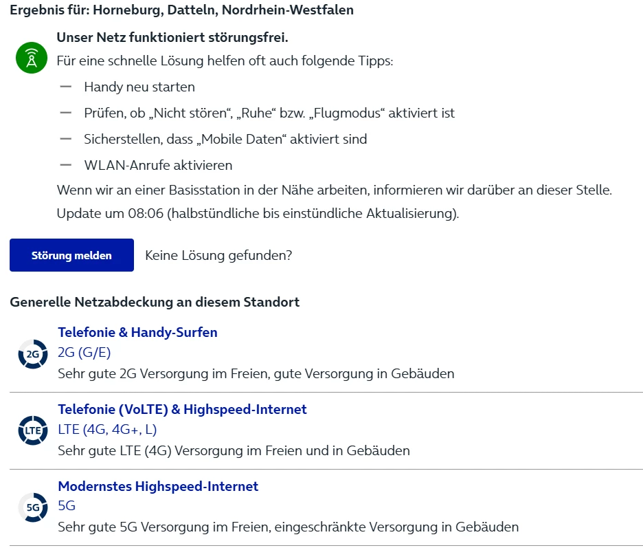 wohl leider abgebaut werden musste. Einen Abbau erkennt der O2 Livecheck nicht als Störung.
