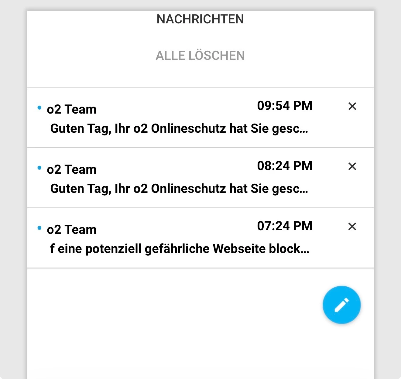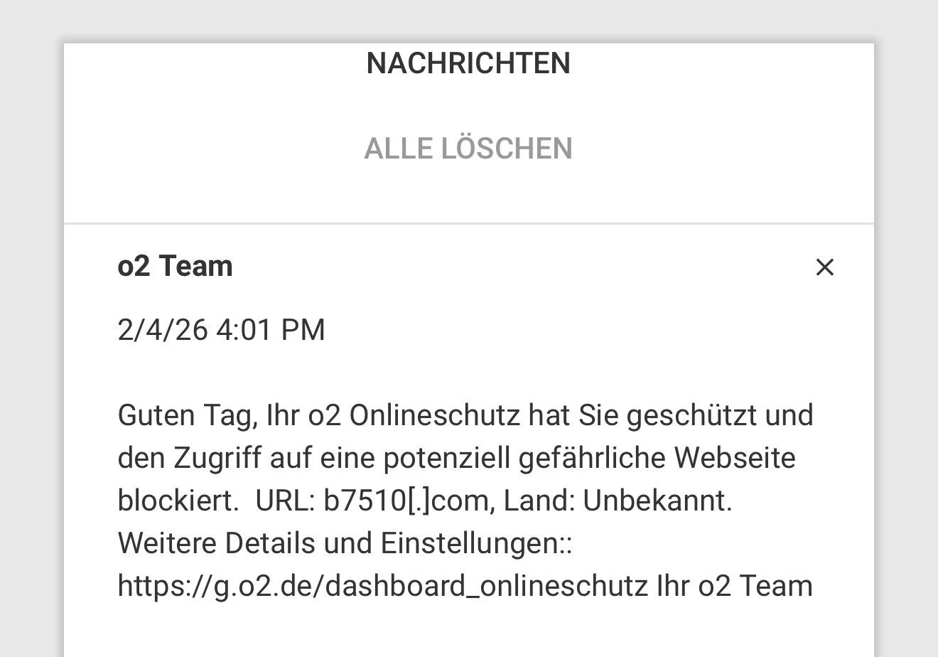 Der Router erhält dann mehrere SMS, dass der Onlineschutz gegriffen hat.