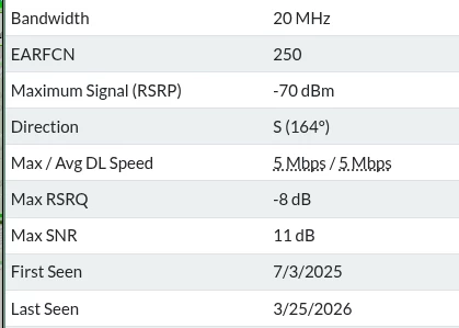 Die FB mag die 1,8 Ghz gerne wegen den 20 MHz. Aber genau diese ist, auch laut Cellmapper, grandios bei 5 Mbits (wenn überhaupt).