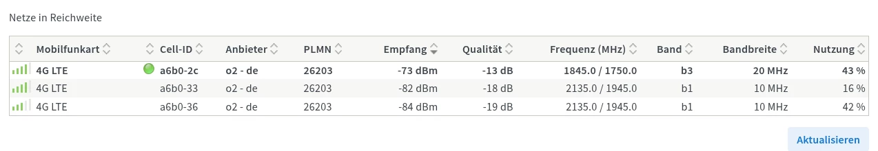 Wobei mein “Handy” Tarif zum Telefonieren meistens 0/5 GB verbraucht im Monat, da nur Telefonate. Ein Routertausch temporär mit einem TP-Link MR100 (4G) brachte auch nichts, eher im Gegenteil. Das Teil fliegt durch alle Netzmasten alle 30 Sekunden durch. Wieso auch immer, aber kann auch die China-Schrott-Software sein.