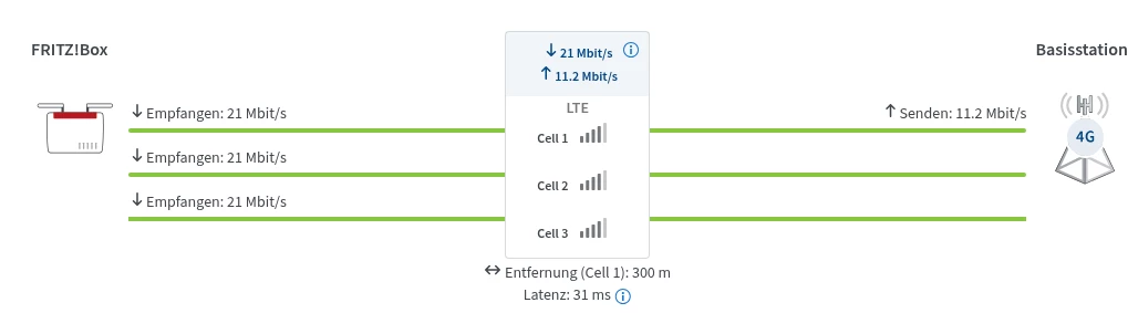 Die Funkzellen an sich haben aber recht gute Werte, also keine “lokale” Überlastung, denke die Anbindung oder die Knotenpunkte sind halt das Bottleneck.