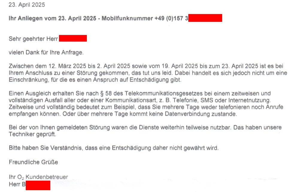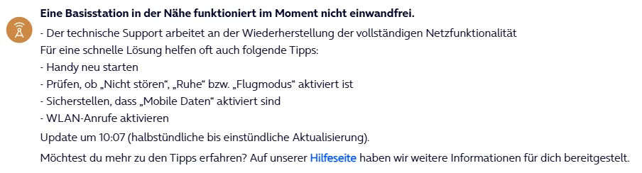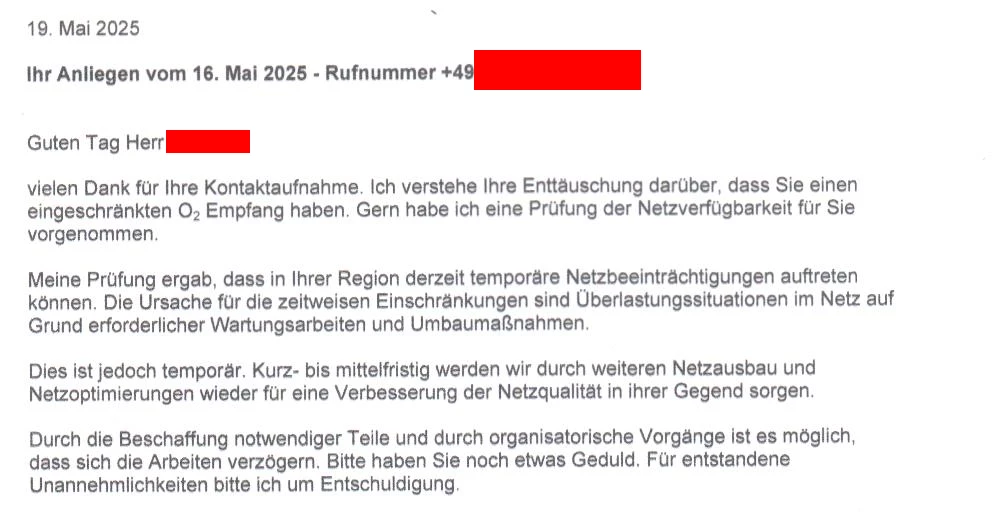 Kurz darauf hin habe ich nur noch “Kein Netzservice” bei der o2 Karte. Seit gestern. Aber keine Bestätigung, zu wann oder ob. Oder es liegt an der aktuellen Störung hier, kann ich mittlerweile nur noch schlecht zuordnen.