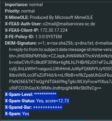 Vielleicht ist jemand für die Mails zuständig und schaut da mal rein; denn bei vielen Anbietern wird ein Score von 12+ bereits abgewiesen (bei mir lasse ich extra keine Filter drin).