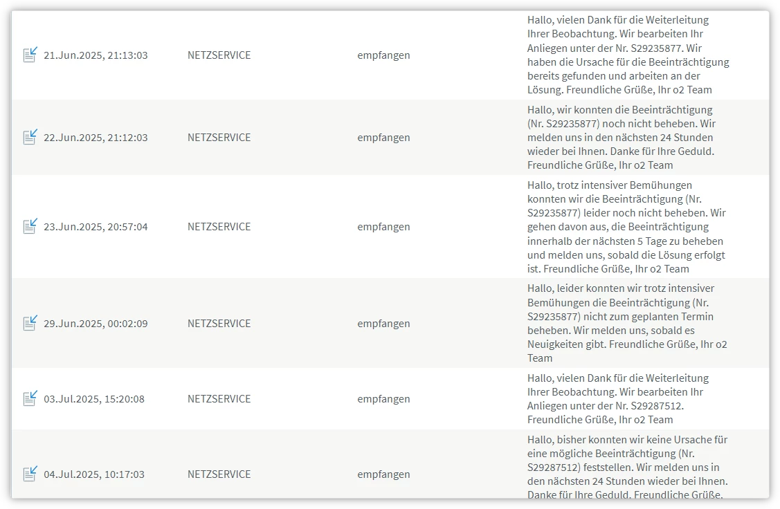 3) Seit 4 Wochen liefert https://www.o2online.de/netz/netzstoerung eben für meine PLZ Probleme.