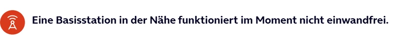 Falls es aktuell eine Störung in deiner Nähe gibt, habe bitte etwas Geduld. In der Regel können die meisten Störungen innerhalb von kurzer Zeit behoben werden. Liegt eine technisch komplexe Situation vor oder die Lieferzeit von speziellen Ersatzteilen dauert länger als üblich, können sich Arbeiten an Basis-Sationen auch länger hinziehen.