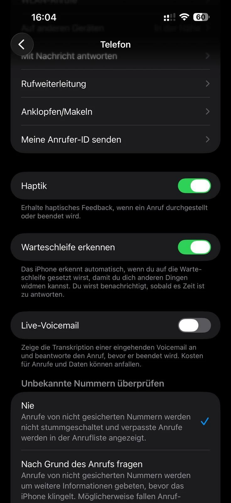 Ich glaube nicht, dass das iPhone 17 Pro Max (iOS 26.1) eine Funktion zum Deaktivieren der Voicemail bietet. Falls Sie wissen, wie es geht, könnten Sie mir bitte die Vorgehensweise erklären? Vielen Dank im Voraus.