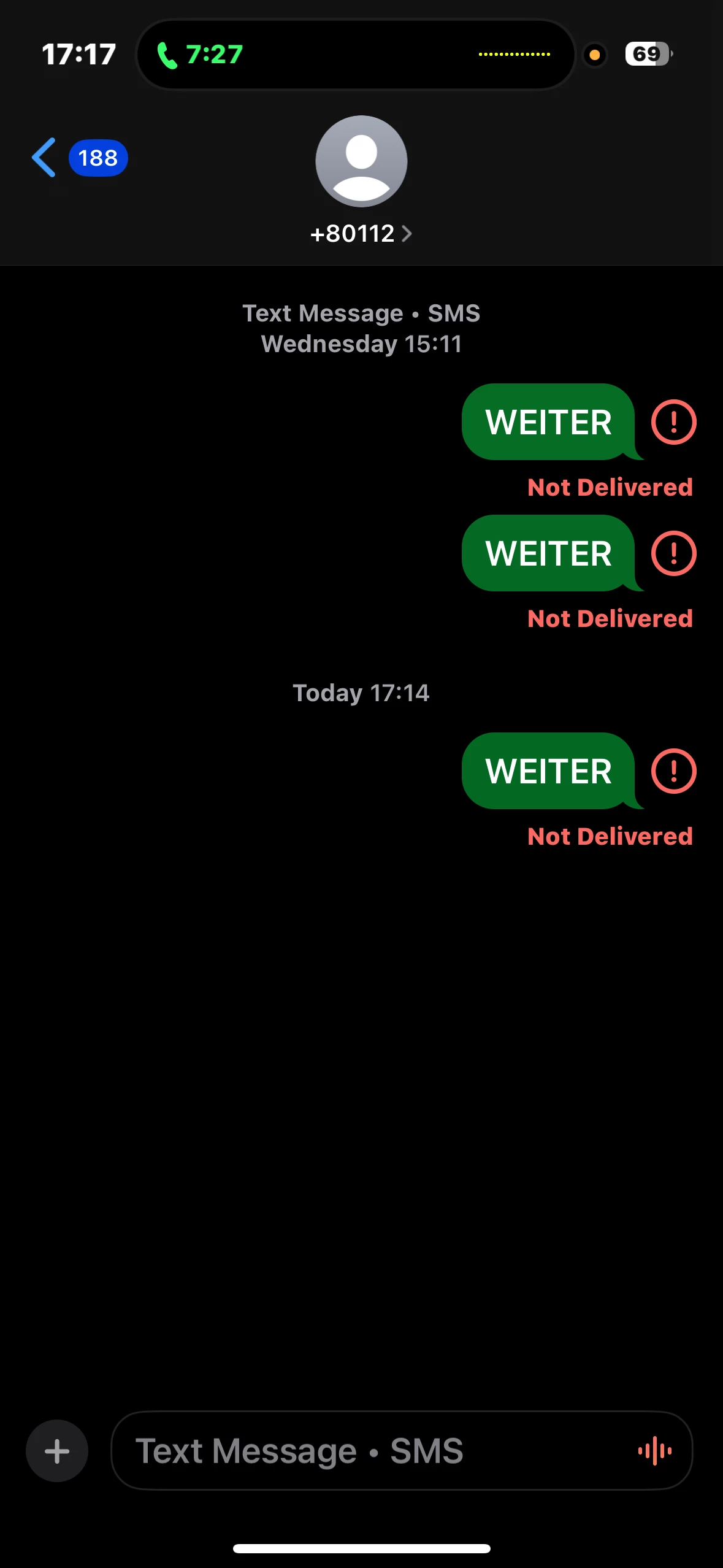 Ich kann an alle SMS schicken, aber nur diese 2 Nummern 80112 und +80112 kann ich kein SMS versenden. Es schreibt immer ‘not delivered’. Ich habe alle Möglichkeiten probiert aber leider funktioniert das nicht.