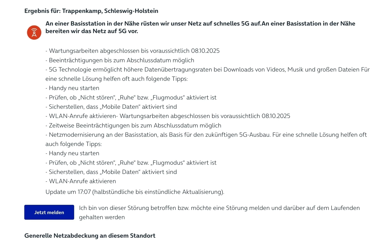 Moin, heute habe ich Probleme mit der Verbindung und Internet in Trappenkamp. Gibt es irgendwelche Information über diese Situation?