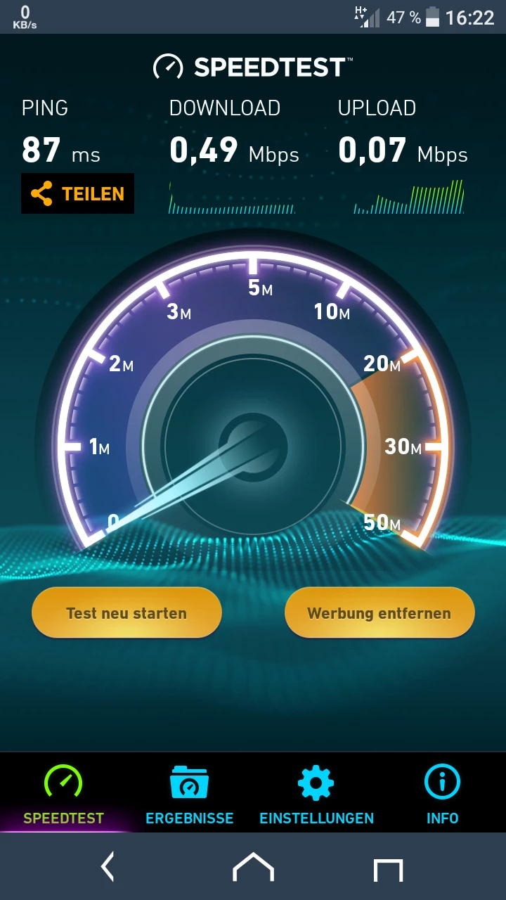 Hier noch ein Beweis wie es hier bei mir aussieht. Mit solch einer Datengeschwindigkeit muss ich mich und meine Frau und noch viele andere die hier wohnen, rumärgern, aber ne es ist ja alles OK.