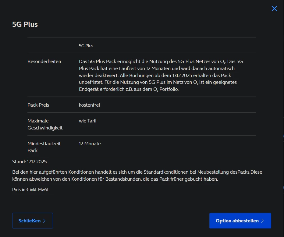 NACHTRAG: Die 5G plus Option ist bei mir schon länger ausgelaufen. Muss ja immer manuell neu hinzugefügt werden.