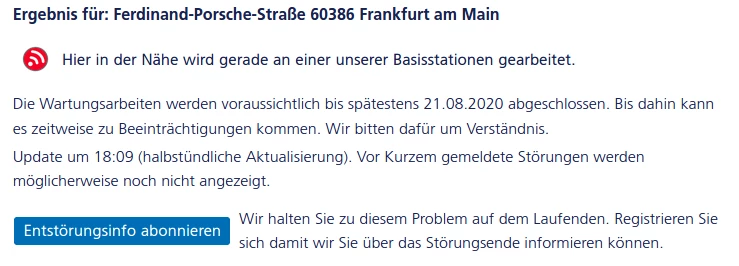 Ich habe seit einer Woche ein sehr schwaches Signal in Frankfurt Ferdinand Porsche straße 26.