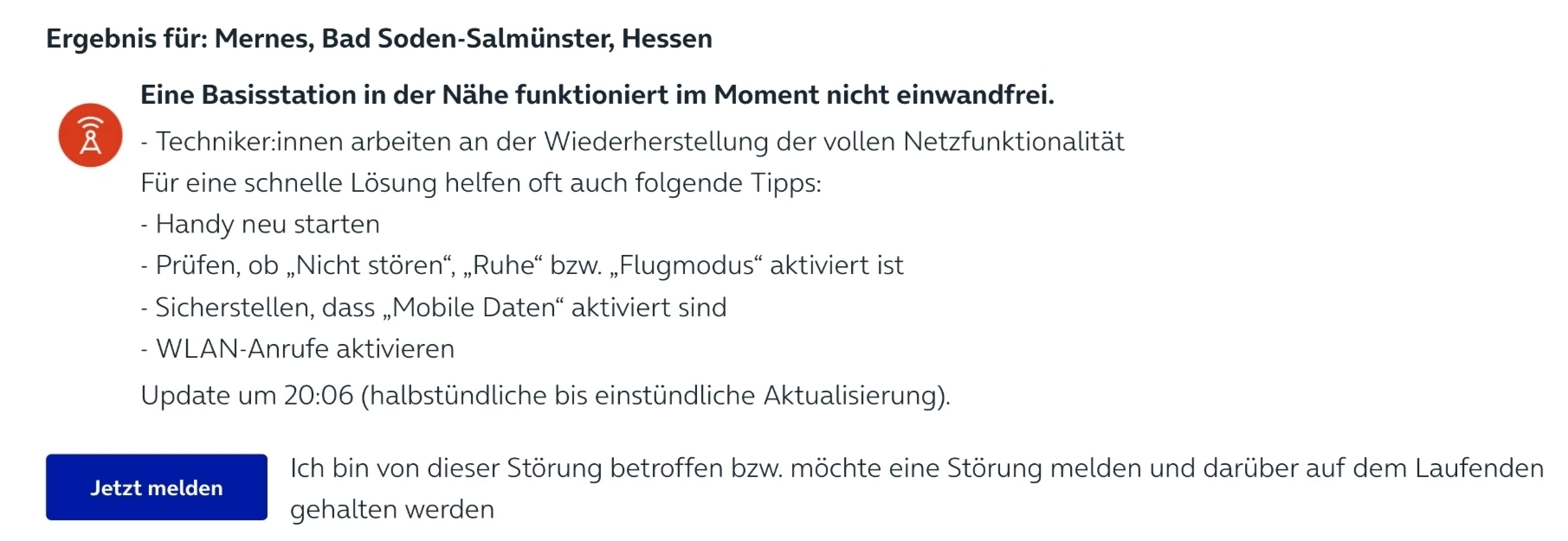 Hast du schon mal in den Live-Check geschaut? Melde da die Störung gerne.