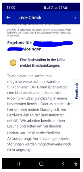 Sehr langsame mobile Daten seit langer Zeit in bestimmtem Gebiet (PLZ 22339)
