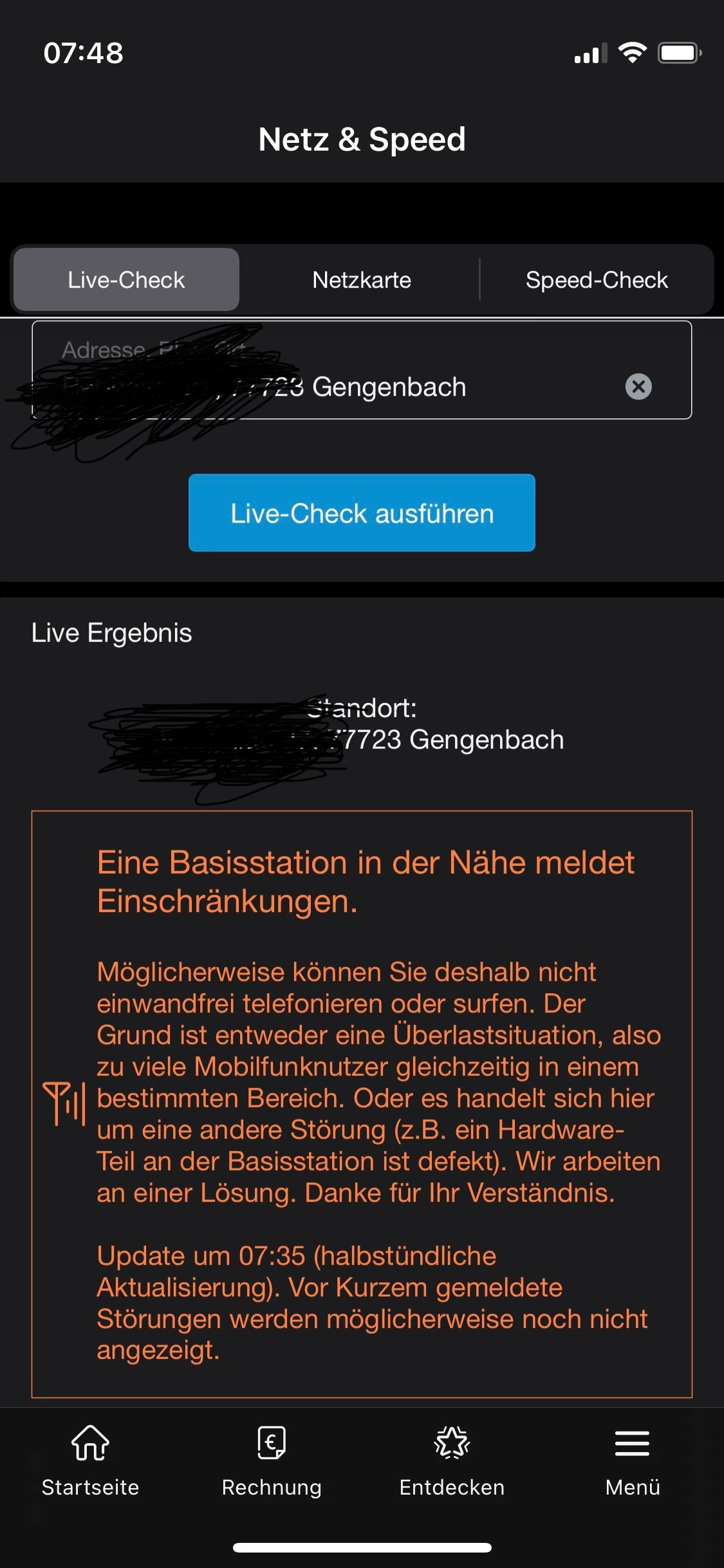 Neben den Arbeiten an UMTS sind die LTE-Störungen leider bisher ohne eine Enddatum hinterlegt, dort werden Belastungsstörungen als Grund genannt.