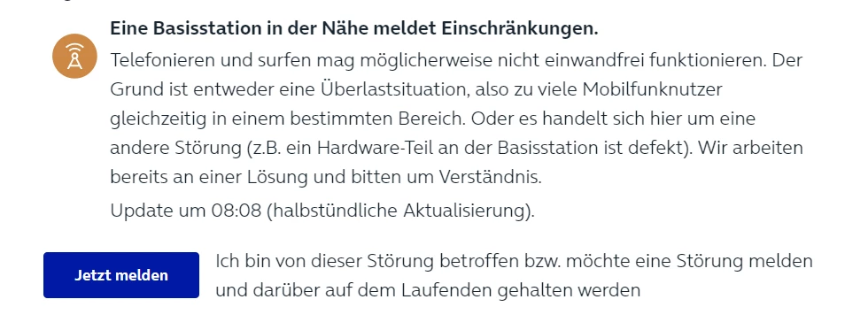 für den Bereich des GVZ kann ich aktuell noch Einschränkungen erkennen. Für den größeren Umkreis kommt es allerdings auf den genauen Ort an. Einen kompletten Ausfall der mobilen Daten und der Telefonie konnte ich zuletzt nicht feststellen.