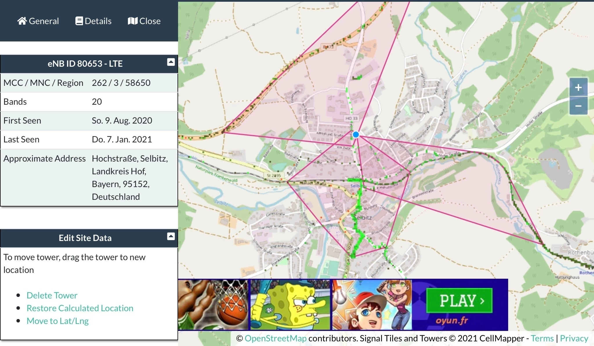 Genaueres kann ein Mod sagen… oder vielleicht kommt ja jemand mit einen Android Smartphone+Cellmapper an der Station vorbei.