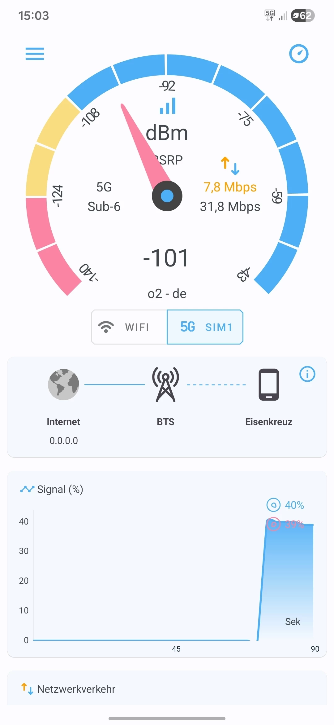 Das Handy zeigt 5G an, plötzlich Verbindung weg, o2 my Service App sagt keine Mobilen Daten.