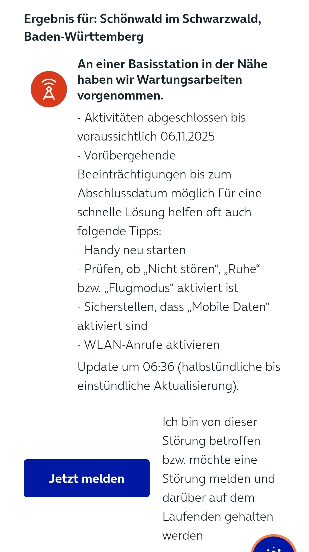 Unsere Techniker arbeiten aktuell noch bis zum 06.11.2025 an den Sendemasten, bis dahin kann es leider zu diesen Beeinträchtigungen kommen.
