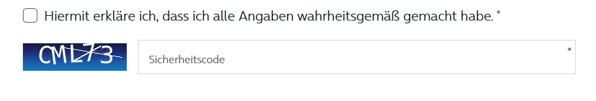 Sicherheitscode bei dem Antrag auf Entschädigung