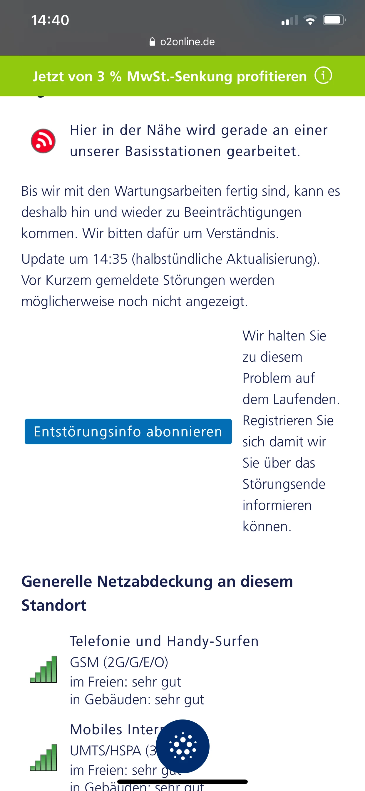 Abonniere doch die Entstörungsinfo, dann bekommst du Updates per SMS.