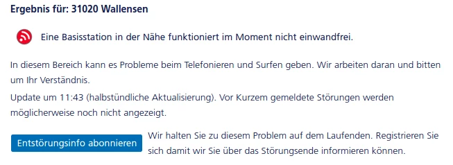Störung in 31020 wallensen