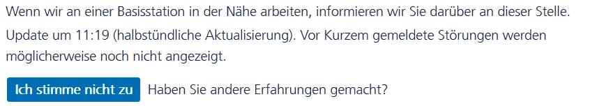 Die GSM-Störung (gleicher Mast) konnte aber bereits behoben werden!