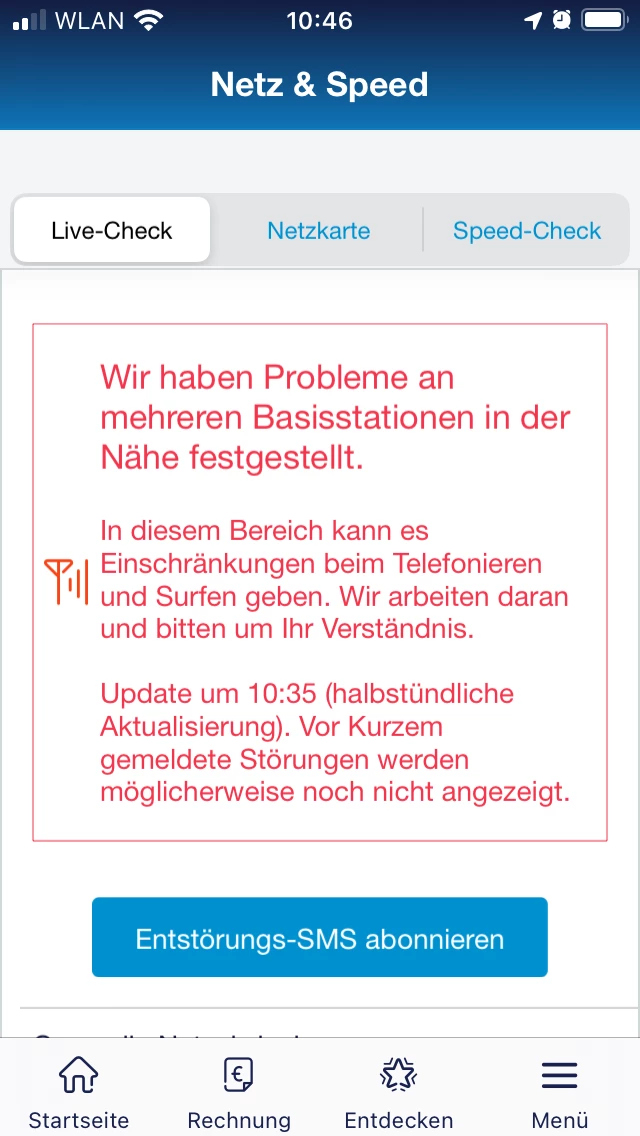 alle melden rot und Wir haben Probleme an mehreren Basisstationen in der Nähe festgestellt