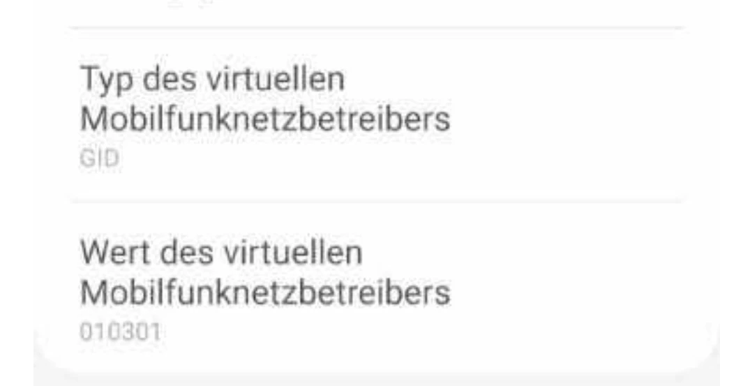 Beim anderen Handy steht bei Typ des virtuellen netzbetreibers GID