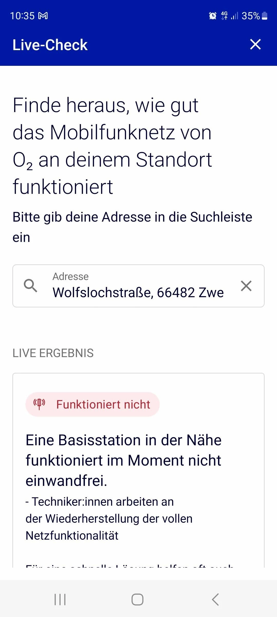 vielen Dank für deine Rückmeldung. Ich habe in unserem Live Check keine bekannten Störungen finden können. Sind denn auch andere o2 Kunden in dem Bereich davon betroffen?