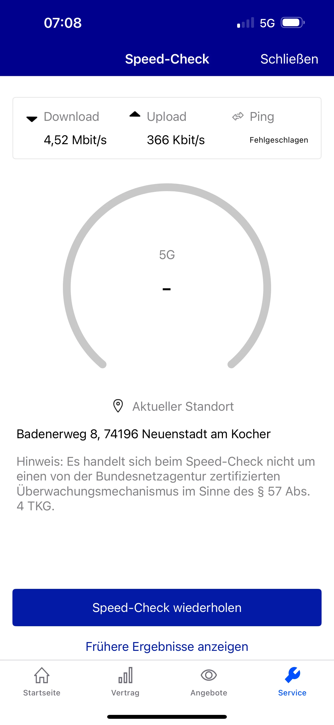 Ich habe prinzipiell Empfang. Genau 1 Strich im Garten. Es zeigt mir auch 5G an, es kommt aber null und nix an. Ich bezahle leider auch eine Uhr für meine Tochter, die jetzt unbrauchbar ist.