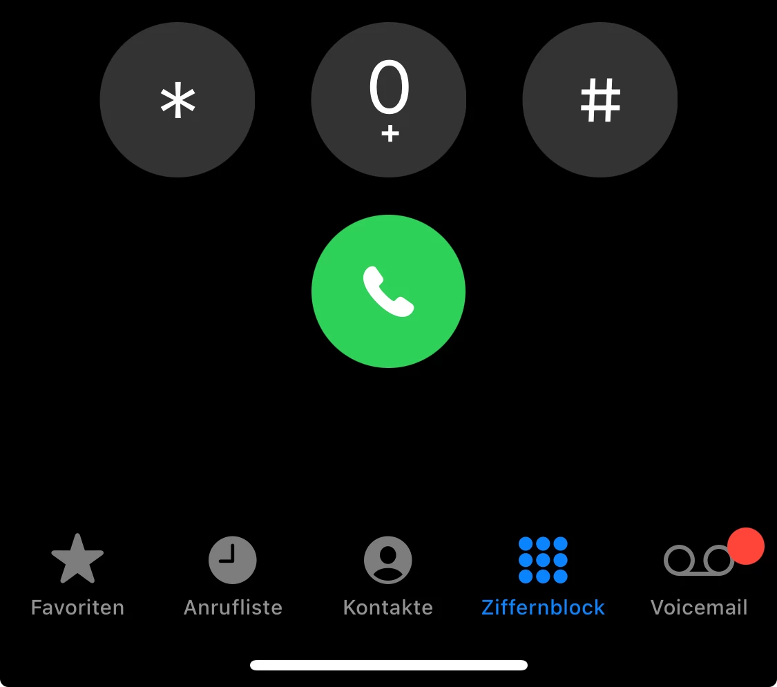 Es gibt keine Voicemail und Voicemail sagt “es gibt keine Voicemail” dann Rotepunkt bleibt immer.