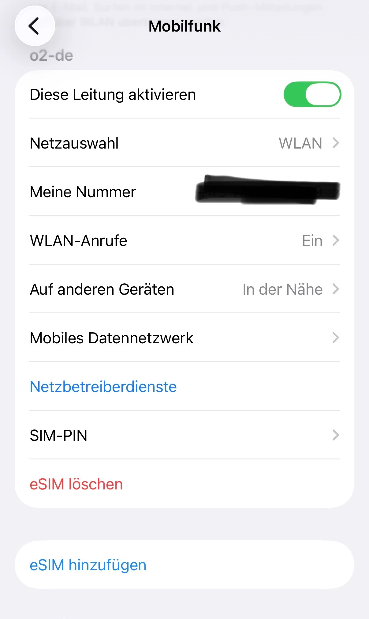 Muss ich bei ,diese Leitung aktivieren’ ausschalten? Dann würde ich meine physische SIM nochmal einsetzen, wie vorgeschlagen.