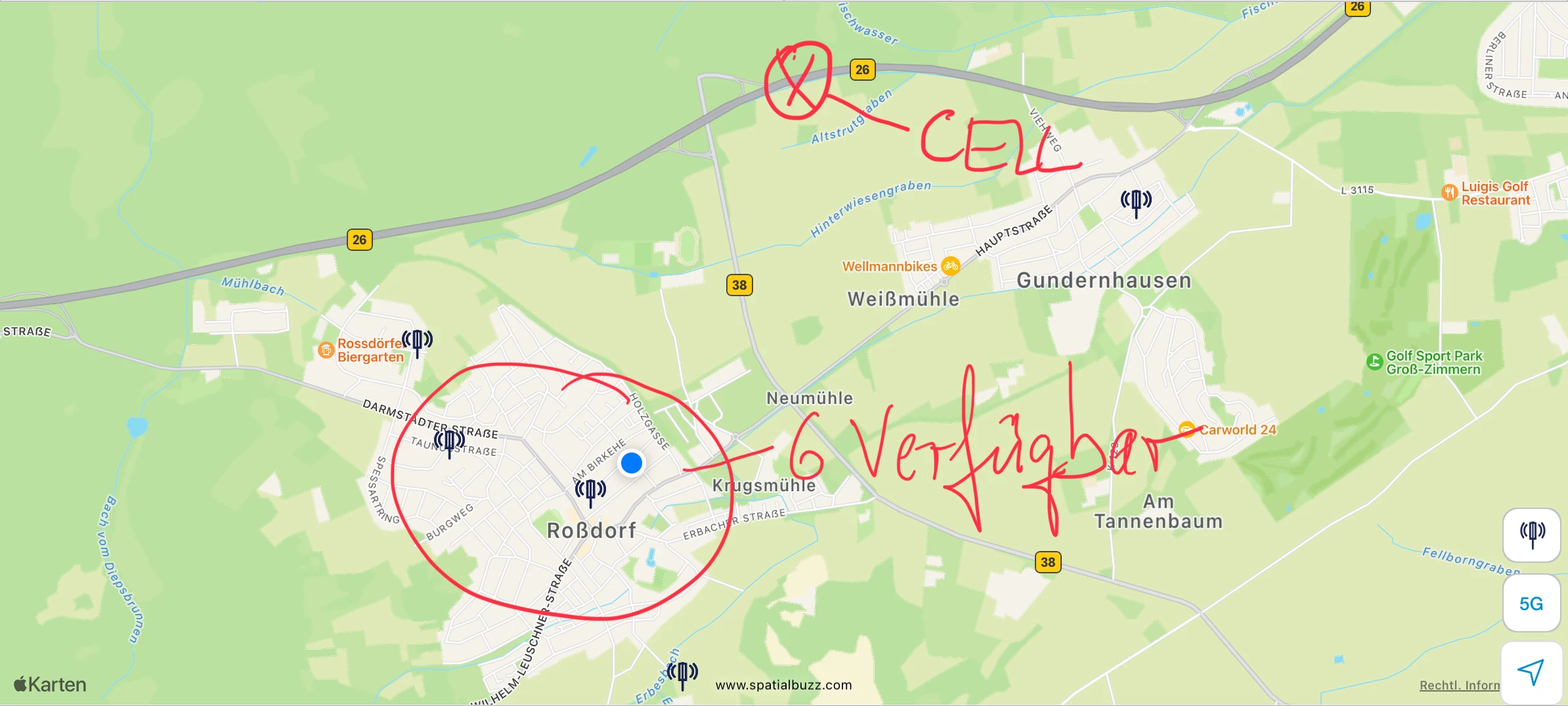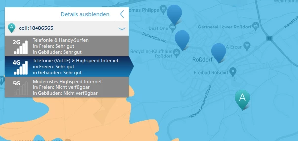 Habe gerade aus Interesse mal geschaut, in welchem Mast ich wohl bin und interessanter Weise folgendes gefunden. Ich bin in einer Zelle eingebucht, die an der Autobahnausfahrt steht. Das ist die am weitesten von mir entfernte Stelle, obwohl zig nähere Masten in meiner Umgebung sind.