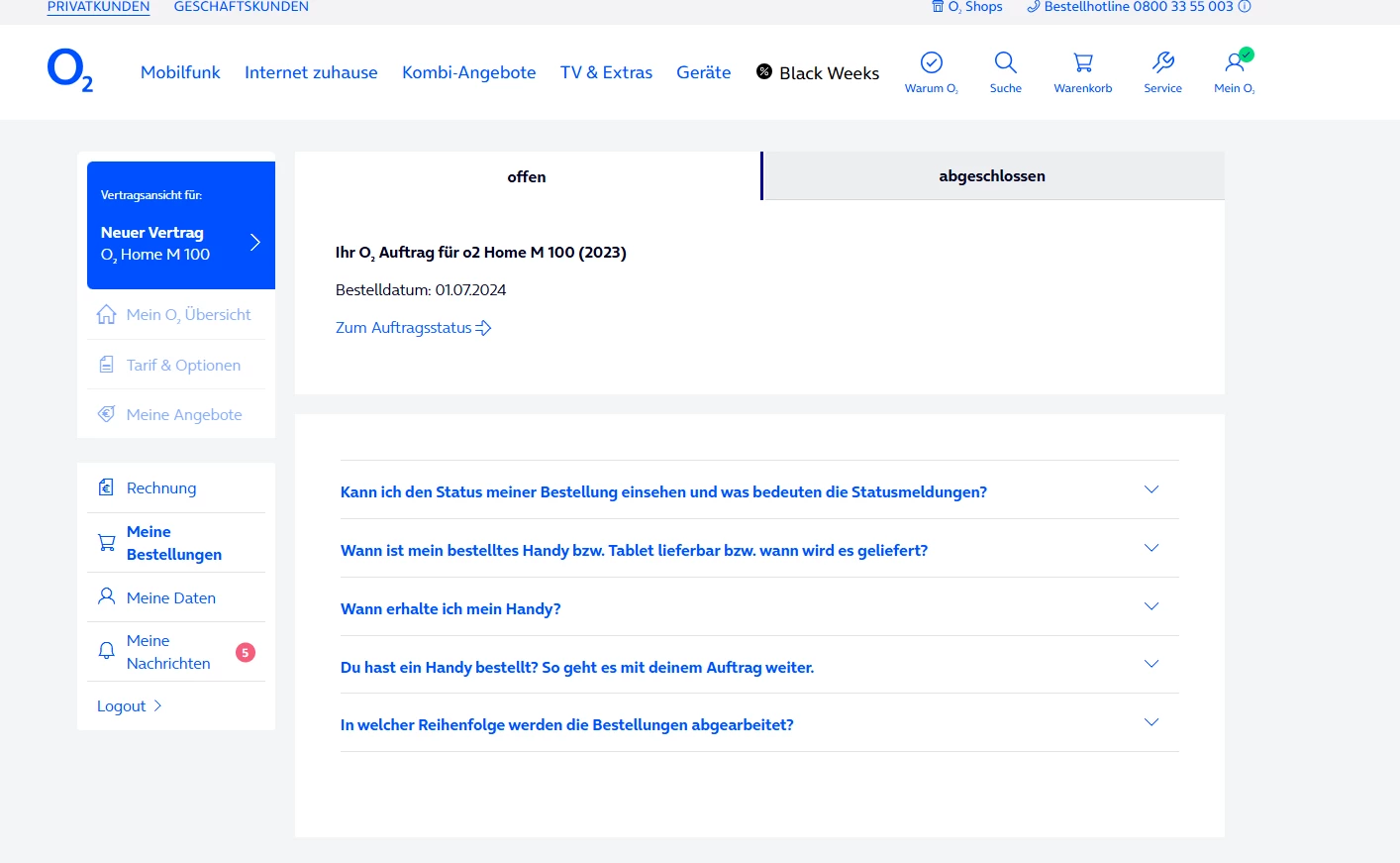 • 24 Monate Laufzeit oder bis zur Aktivierung des Glasfaservertrags o2 Home M 100 (2023) für denselben Haushalt (Bestellung am 01.07.2024)