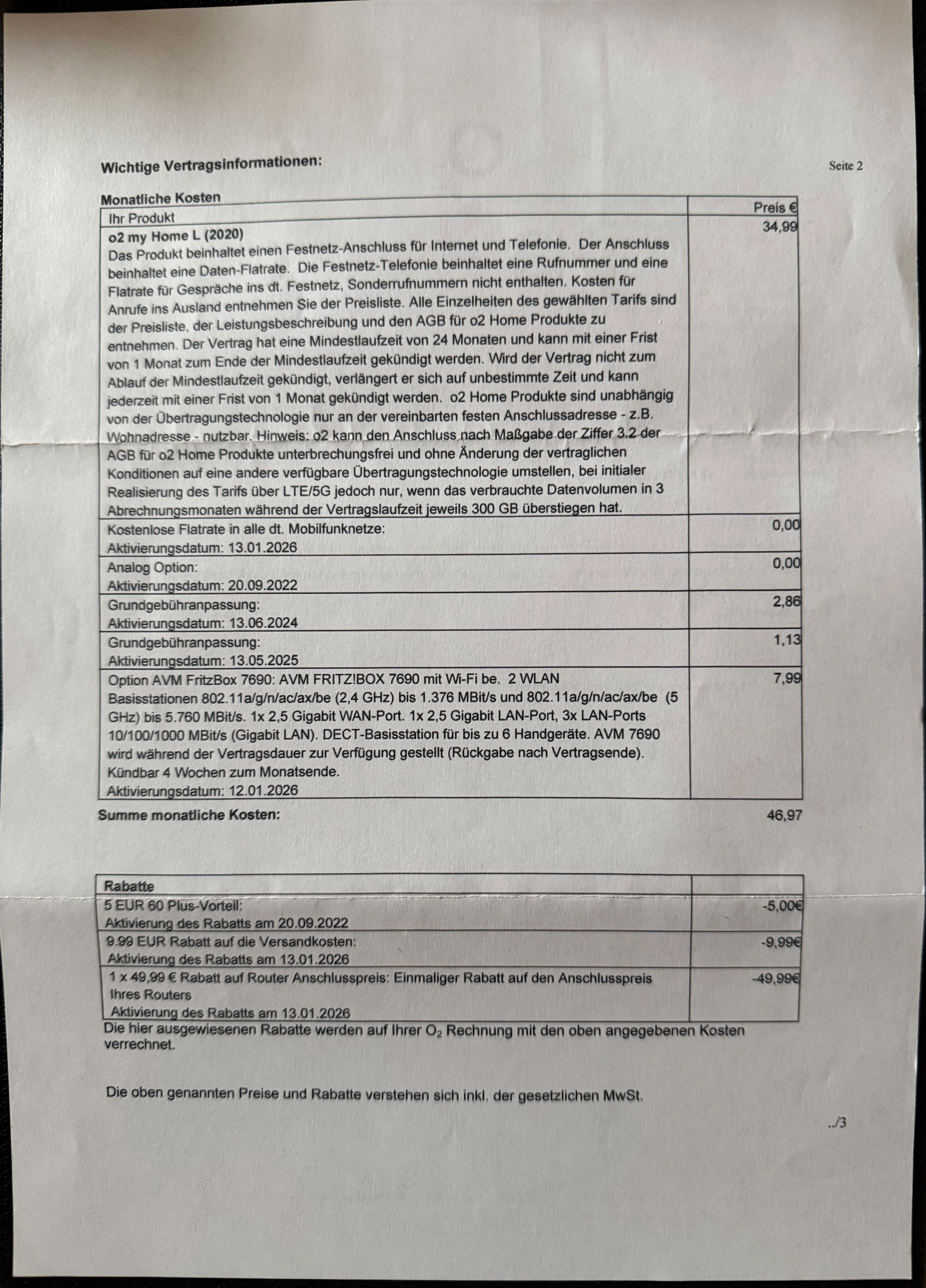Habe am 09.01.2026 telefonisch meinen bestehenden DSL Vertrag plus neuen Router um 24 Monate