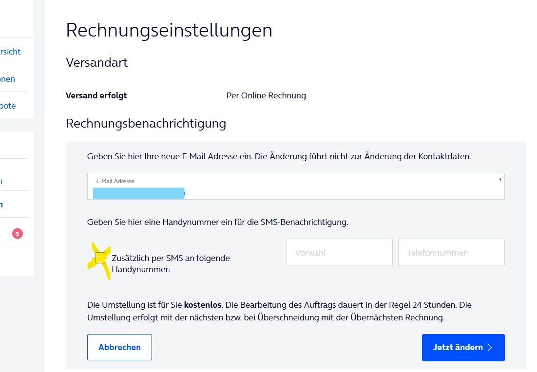 bei der Rechnungs Benachrichtigung kann auch eine Rufnummer hinterlegt werden,