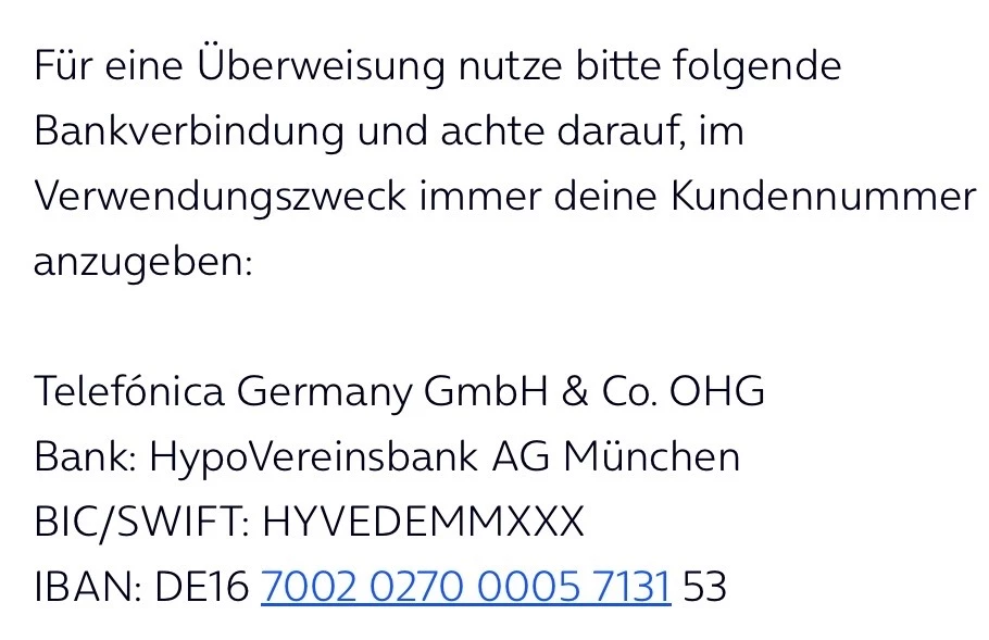 Anderenfalls rufe die Rechnungsabteilung unter 089 78 79 79 456 an und lasse nach der Zahlung suchen, wenn du nicht an diese IBAN überwiesen hattest.