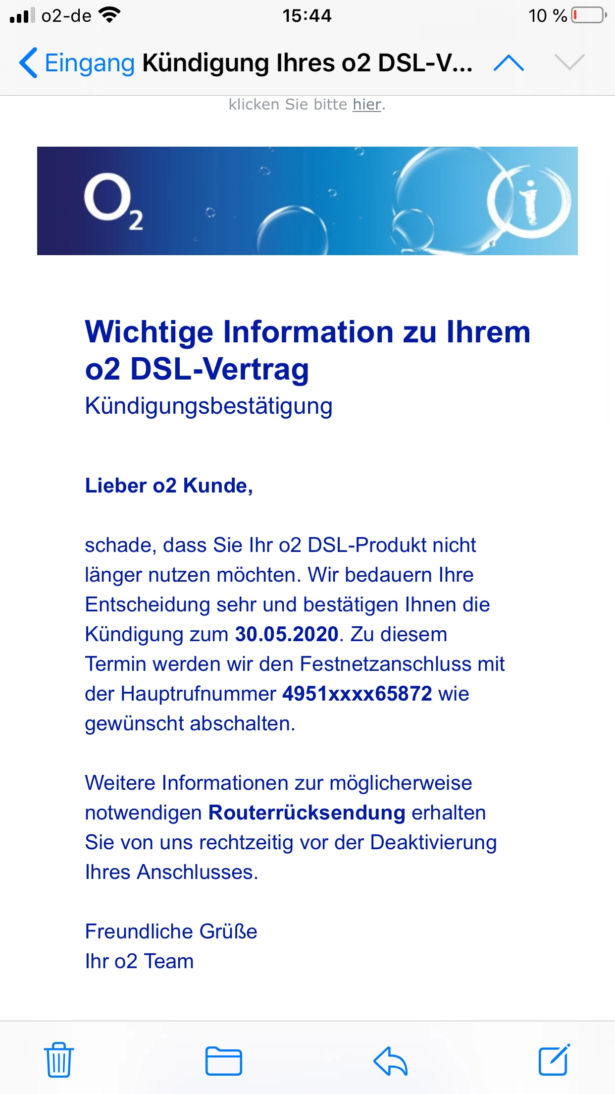 ja der neue Anschluss vom neuen Anbieter läuft bereits seit dem 01.06, deshalb hatte ich Ja schon im Voraus gekündigt und eine Bestätigung Ihrerseits erhalten ( siehe Bild oben)