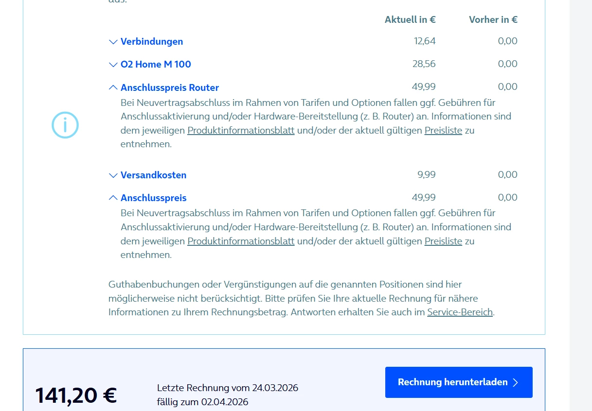 Rechnung - zweimal anschluss preis bezahlt