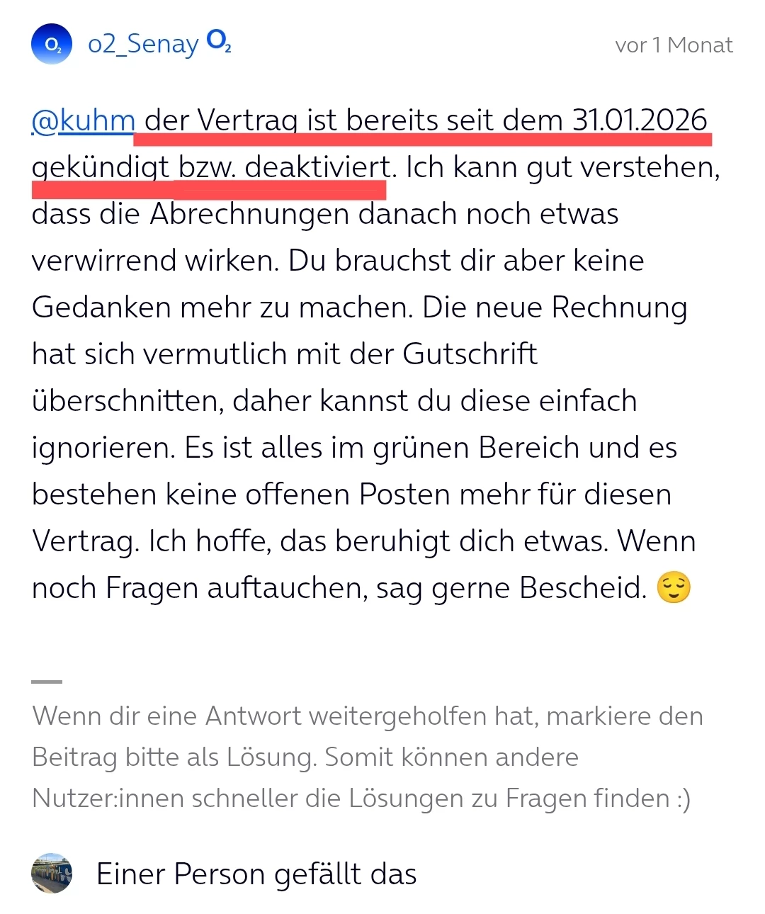 @kuhm erstmal sorry, dass du hier etwas länger auf eine Rückmeldung von uns warten musstest. In der Community kann es manchmal einige Tage dauern, bis wir antworten. Das liegt auch daran, dass es sich hier um ein Kunden-helfen-Kunden-Forum handelt, in dem sich viele User und Userinnen gegenseitig unterstützen. Es freut mich sehr, dass du so schnell hilfreiche Antworten bekommen hast. Vielen Dank an allen Beteiligten dafür. 😊