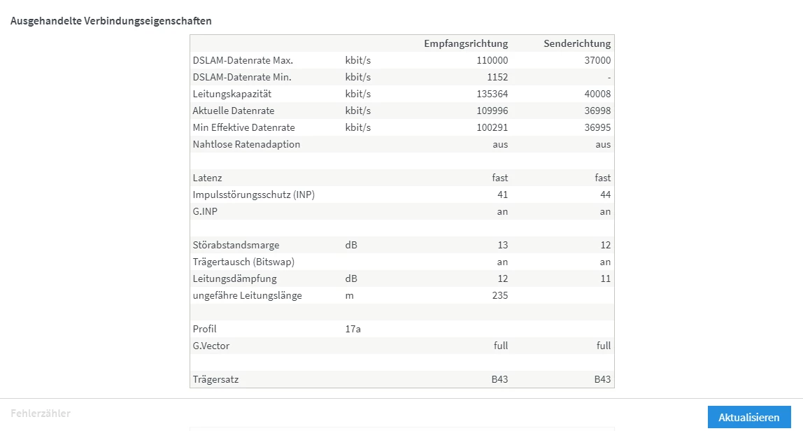 Wie ich daraus schließe, wären hier ca. 100/40Mbit möglich.