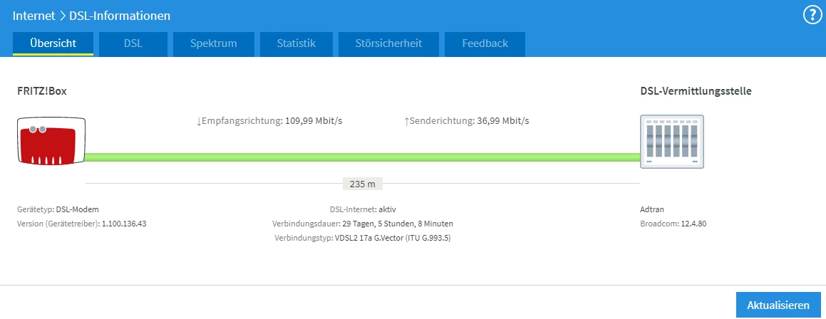 Wenn ich dich richtig verstanden habe, liegt es ja in erster Linie am Breitbandprofil, dass ich nur 25/5Mbit habe und nicht wie lt. Vertrag eigentlich das Maximum von 50/10Mbit habe? Sprich man müsste nur das Profil umstellen?