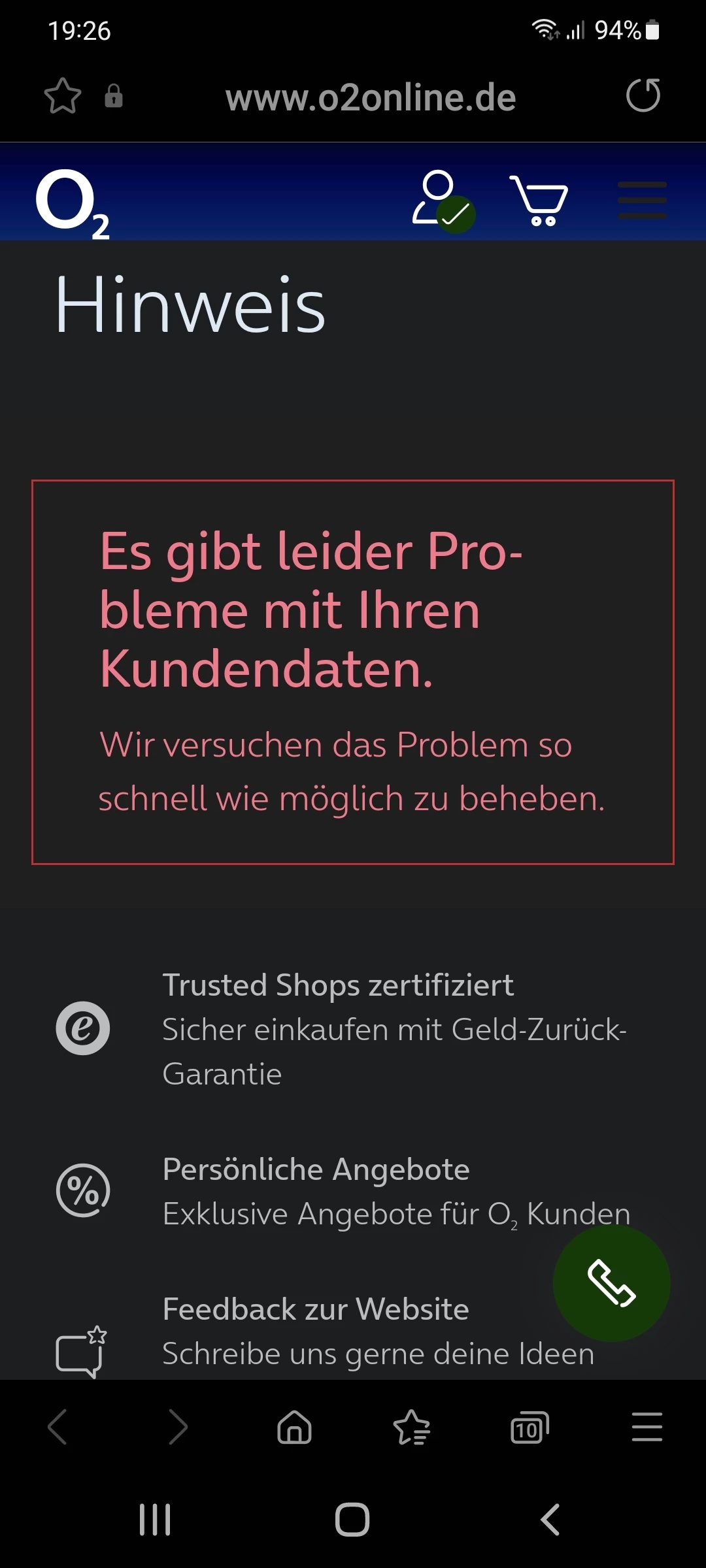Probleme mit kundendaten keine Tarif wechseln möglich