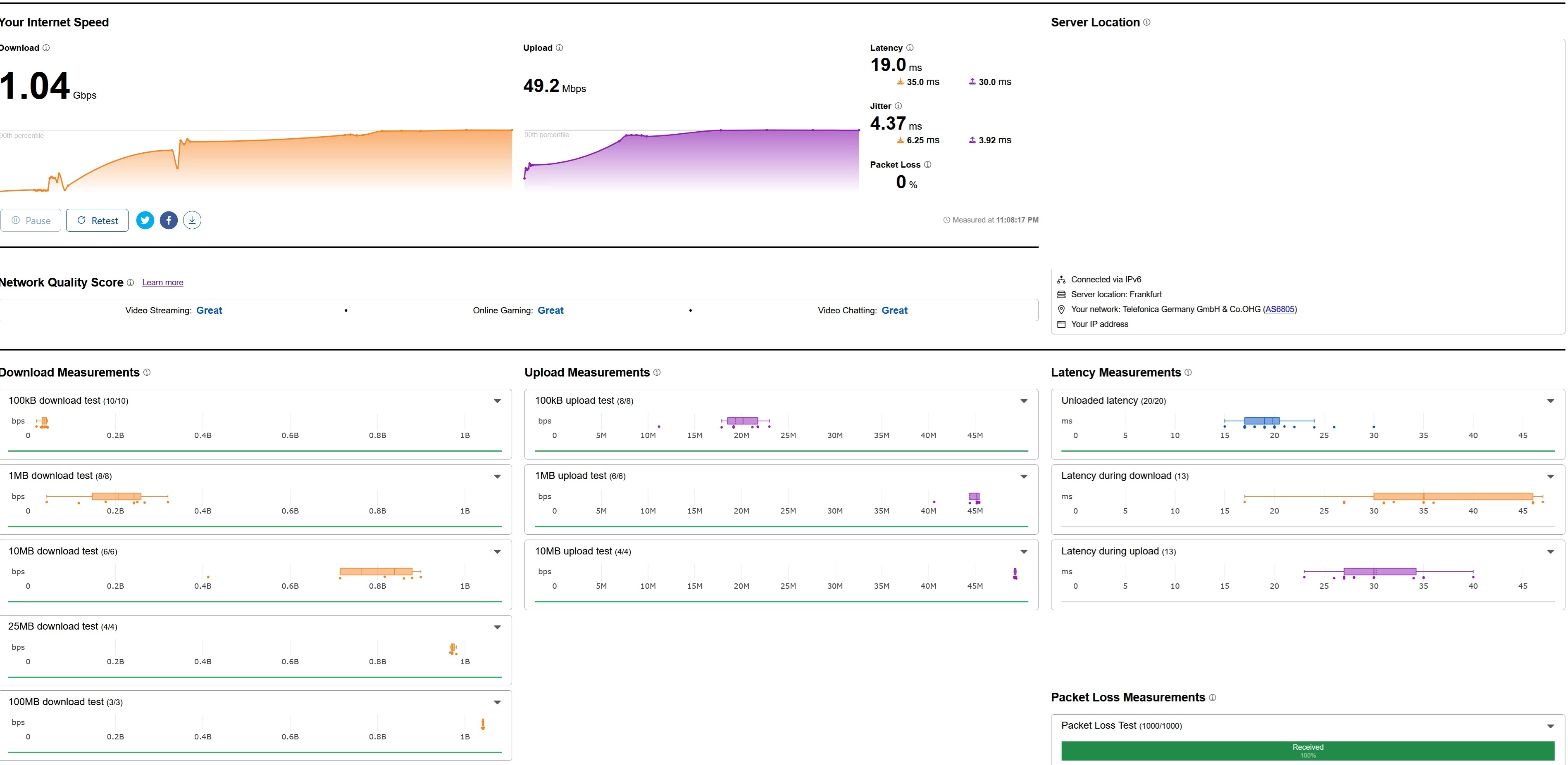 Das sind keine allzu schnellen Werte, ​@Crayten, ich drücke dir die Daumen, dass eine schnelle Entstörung möglich ist.
