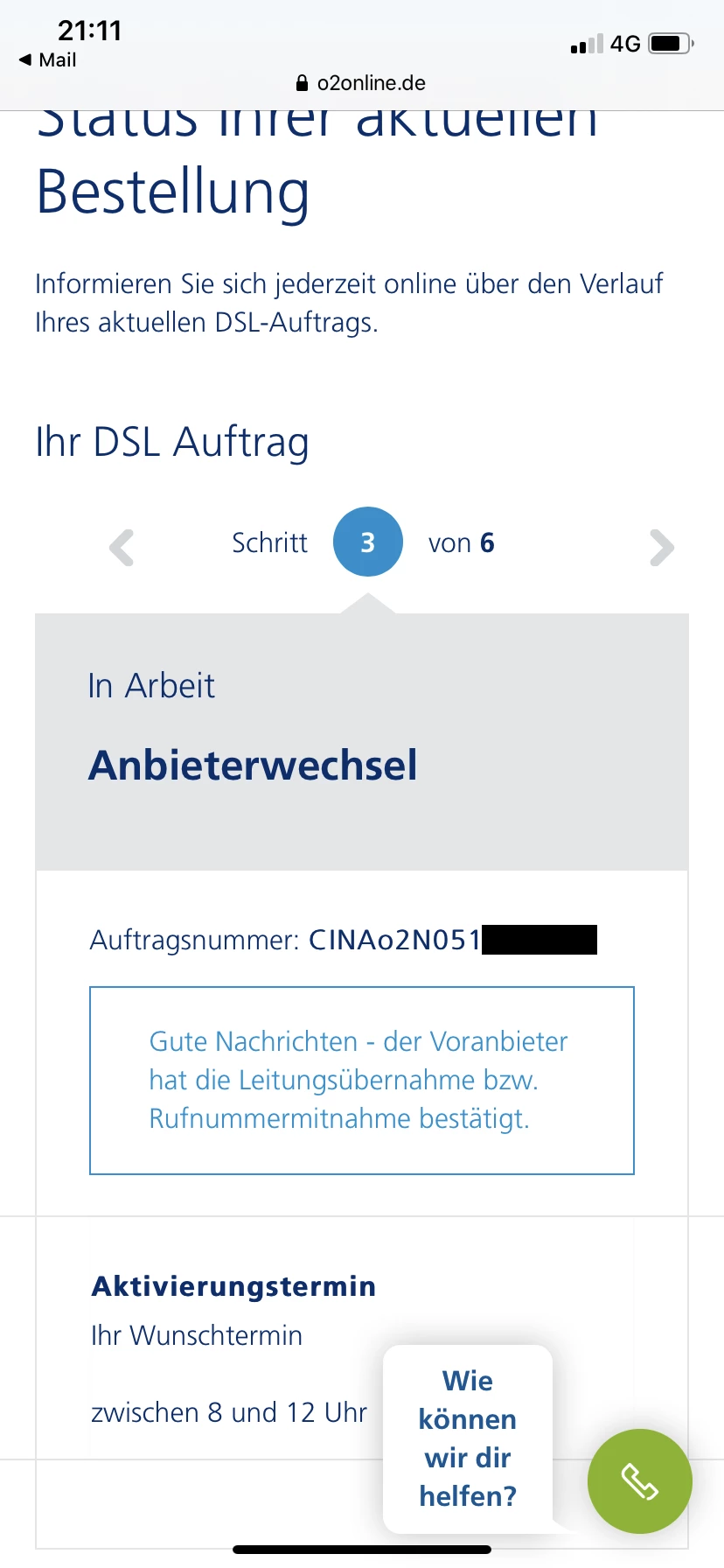 Please also think of the notice period at your previous provider. The startup date at o2 can only be after the end of the contract with your old provider. Old and new providers agree on the switchover, which also takes time. Therefore o2 can not give you the order confirmation so fast.