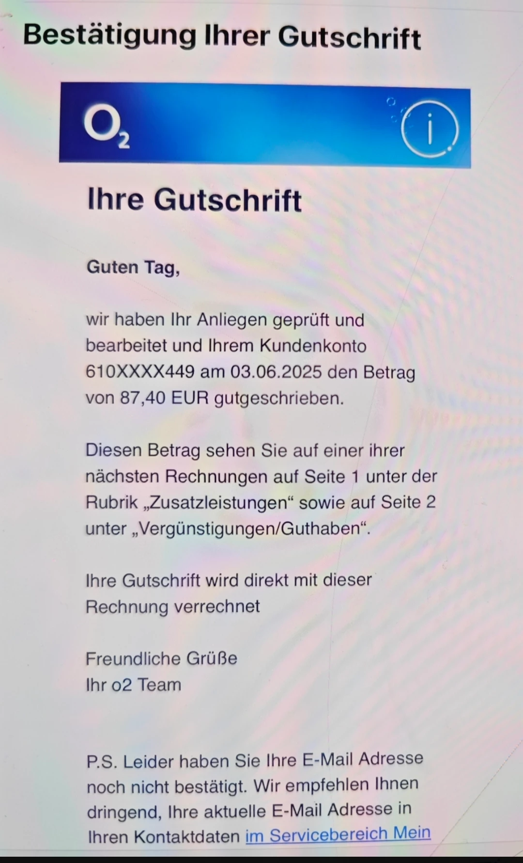 Edit o2_Antje: Kundennummer entfernt / 01.05.2025 / 18:41 Uhr