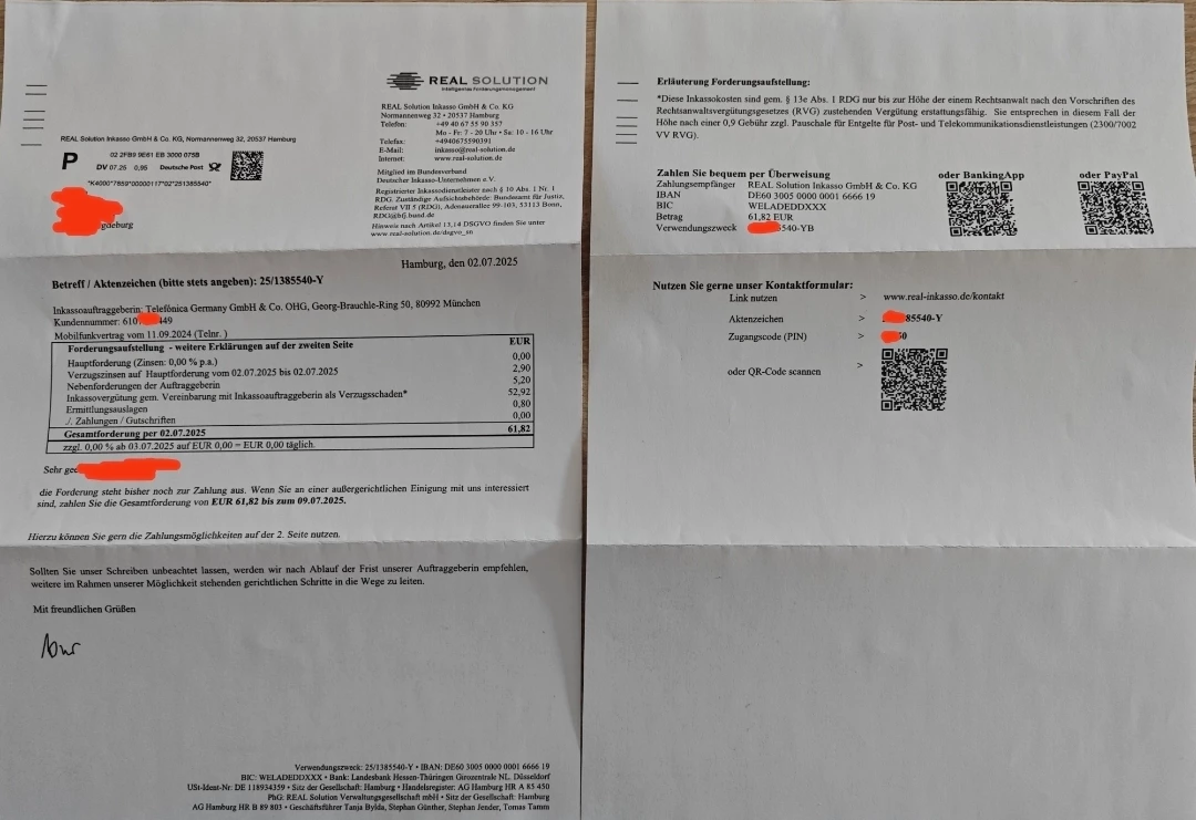 Warum im Inkassoschreiben stattdessen von einem Mobilfunkvertrag vom 11.09.2024 die Rede ist, kann ich mir nicht erklären, aber eine Telnr. wurde nicht genannt.